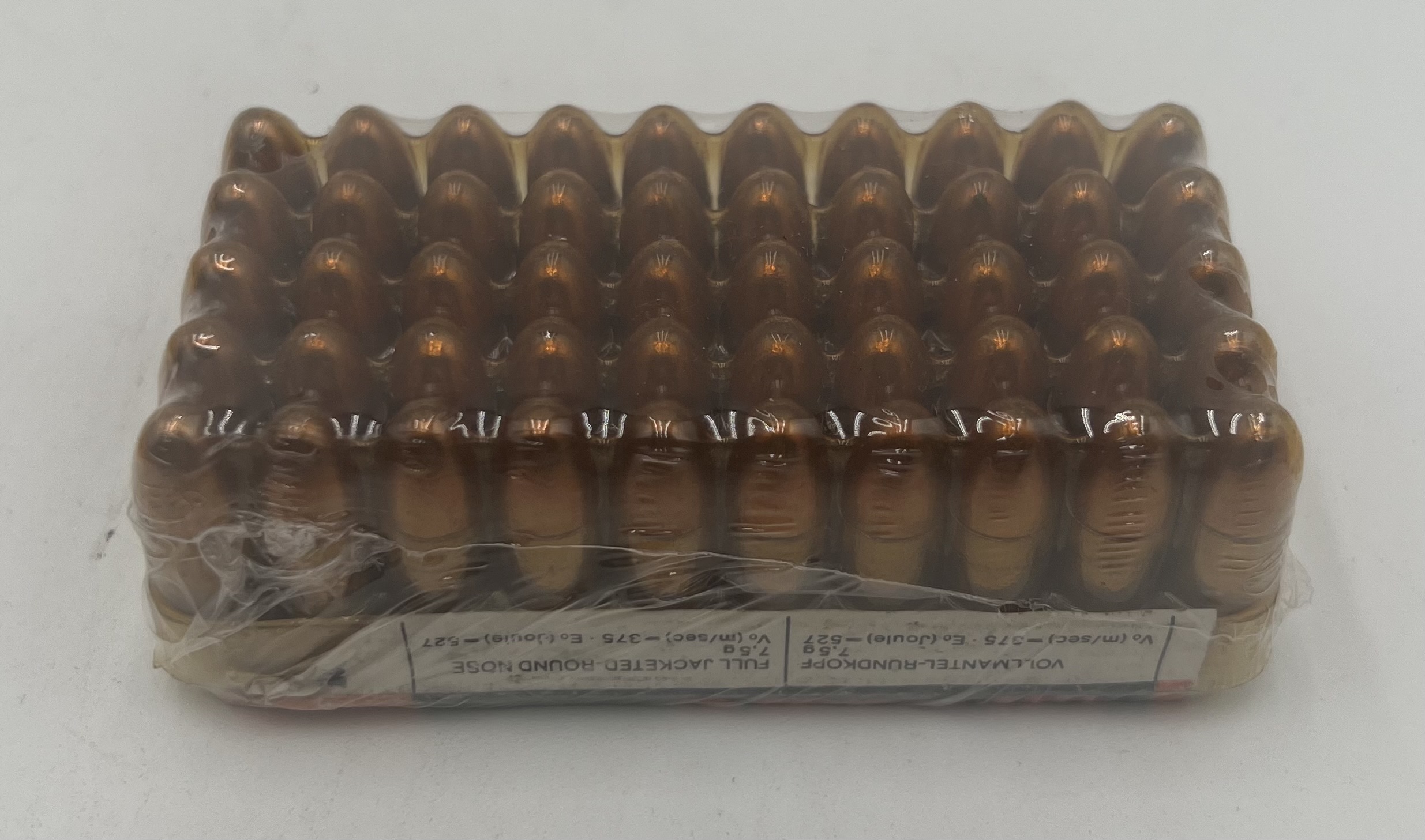 Austrian Hirtenberger military pistol cartridges in caliber 9mm Steyr. This cartridge is nearly identical to the 9mm Largo a.k.a. the 9mm Bayard Long. The case length is 22.7mm as opposed to the 23mm case of the 9mm Largo. Bullet diameter is the same for both cartridges. This cartridge was designed originally for the Austrian Steyr Model 1912 automatic military pistol. It works well also in the Spanish Destroyer carbine and the Spanish Astra Model 400 pistol.